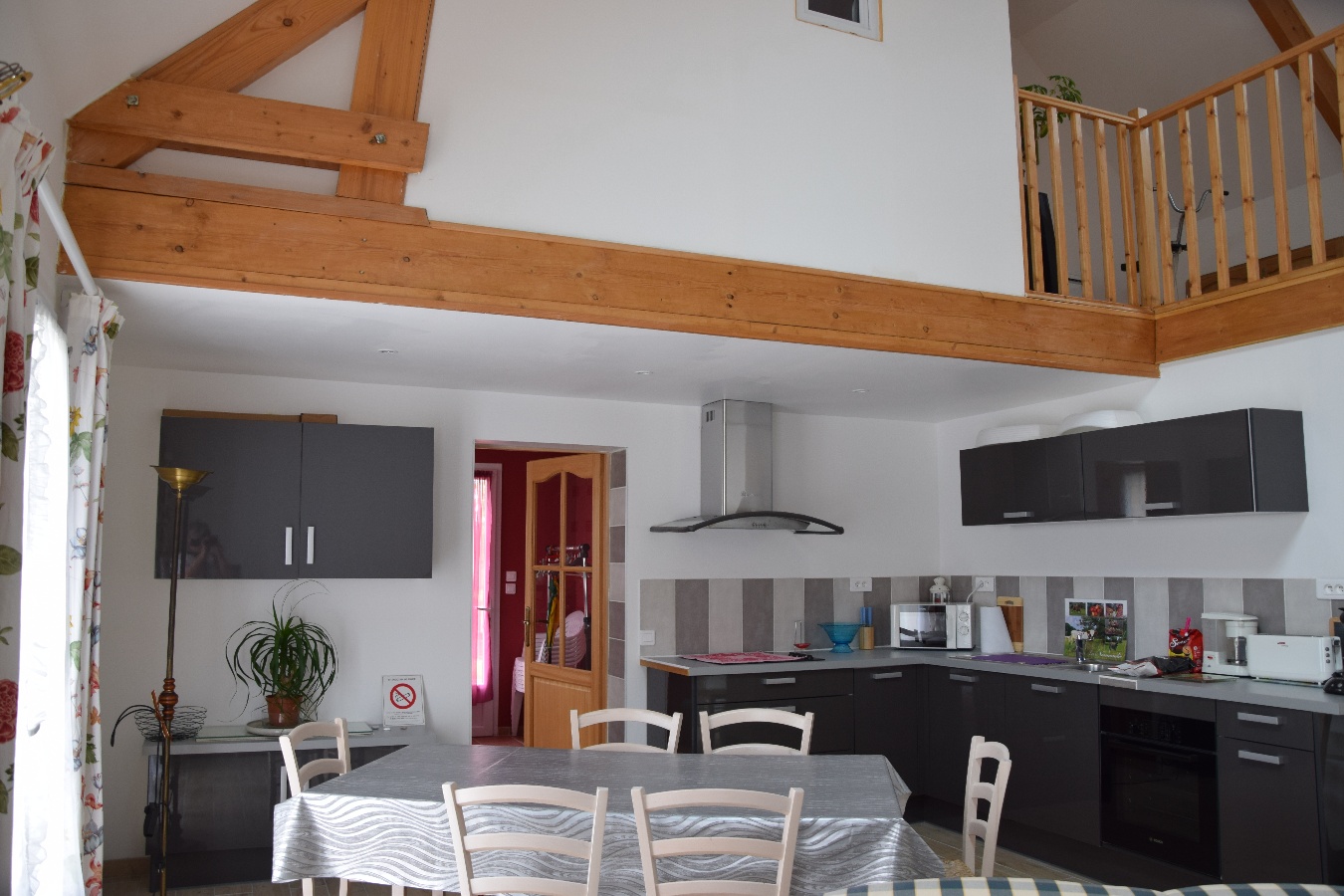 Spacieux : Rez-de-chaussée : pièce à vivre lumineuse plein Sud avec salon-séjour-cuisine aménagée, une arrière-cuisine , 2 chambres (1= lit 140 ; 1 = lit 160), WC, salle d’eau avec WC. Etage : coin lecture de 15m2 en mezzanine, 2 chambres (1 lit en 140; 1 lit en 160), lit bébé, salle d’eau avec WC.