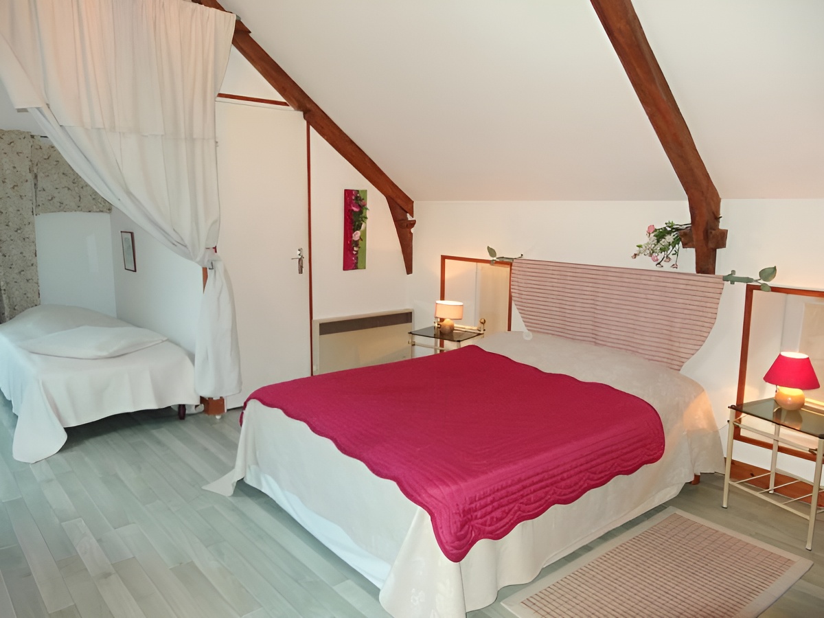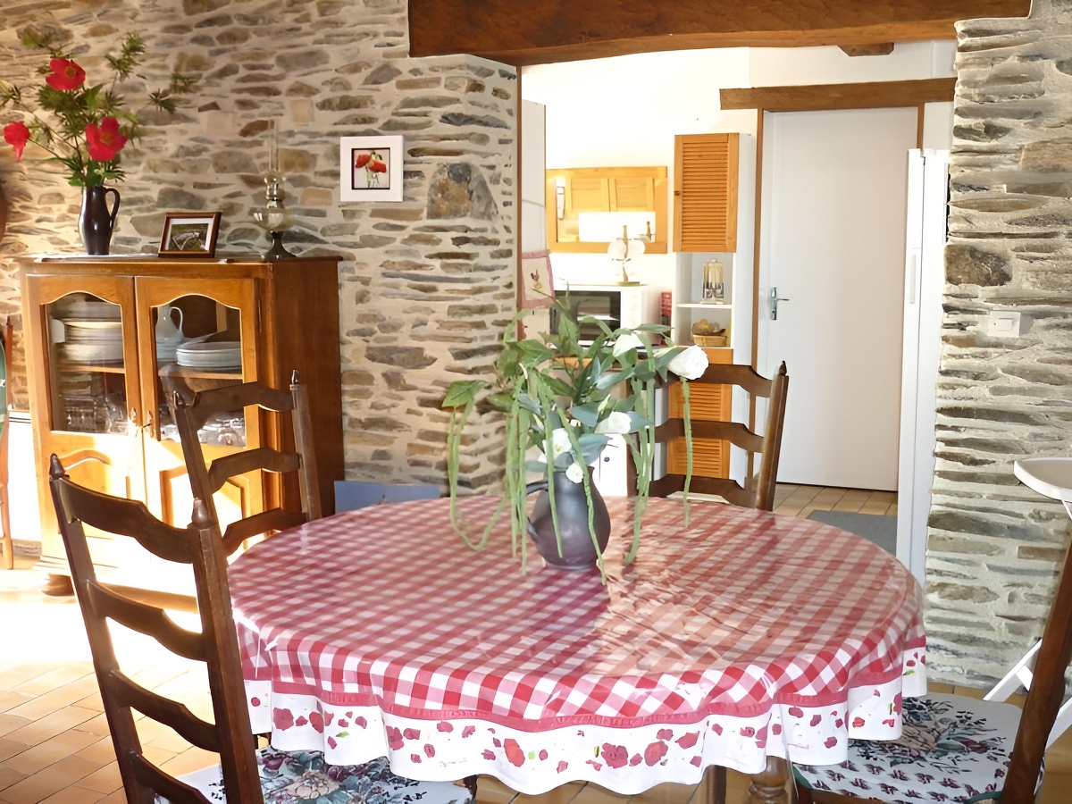 Description : Rénové dans l'ancienne boulangerie de la ferme, ce gîte à l'ambiance authentique et chaleureuse vous garantit confort et calme. La véranda à l'étage vous offre une belle vue sur le verger et la terrasse exposée plein sud est très agréable. Aire d'accueil de campings-cars sur la ferme. Maison indépendante. Rez-de-chaussée : cuisine, séjour avec espace salon (canapé, fauteuils, poêle à bois), 1 chambre (1 lit 1 personne), WC. Étage : 1 chambre ouverte sur le salon (1 lit 2 personnes, 1 lit 1 personne, 1 lit bébé), salle d'eau avec WC, véranda. Chauffage électrique. Lave-linge. TV. Jardin clos avec terrasse et salon de jardin.