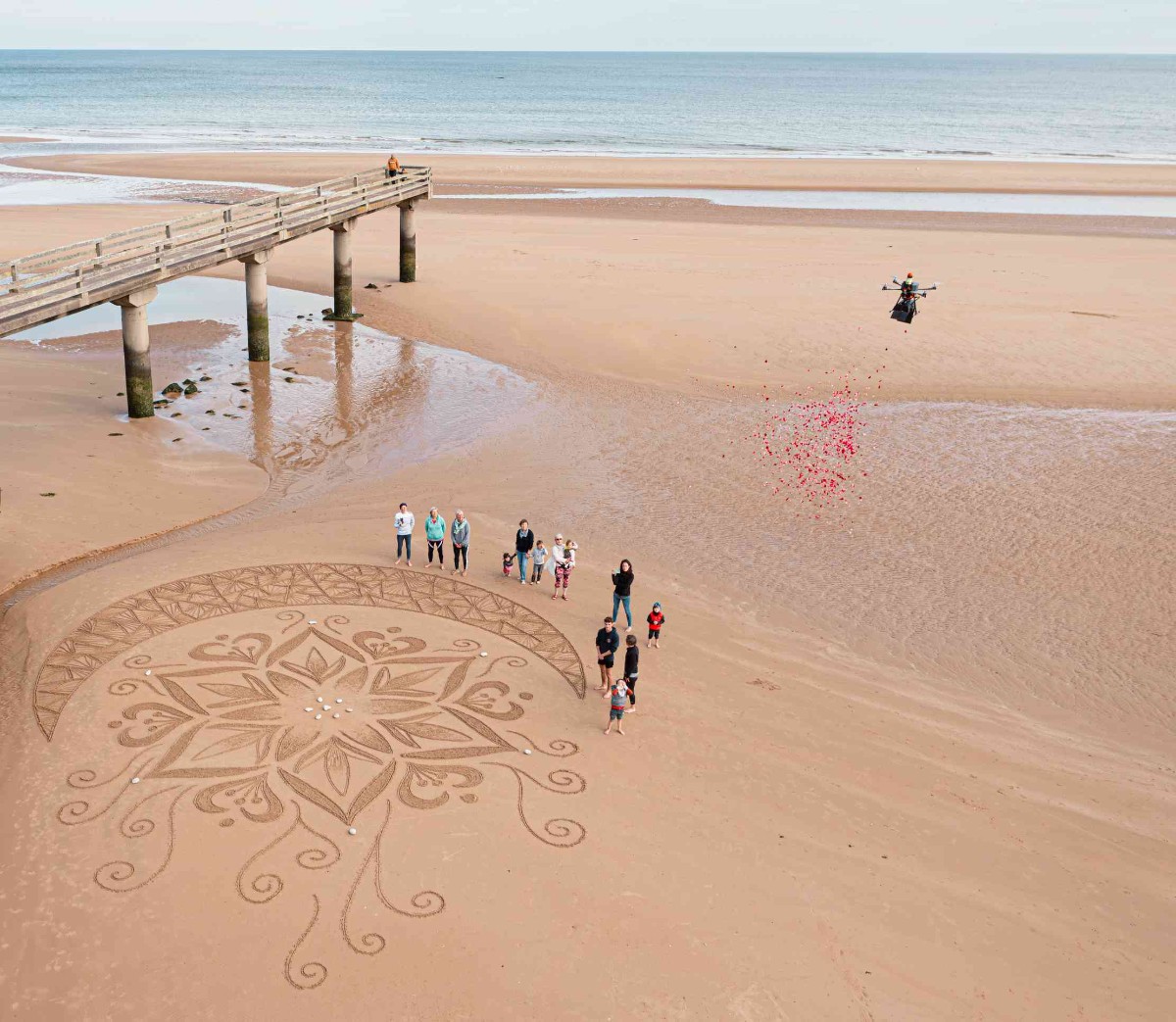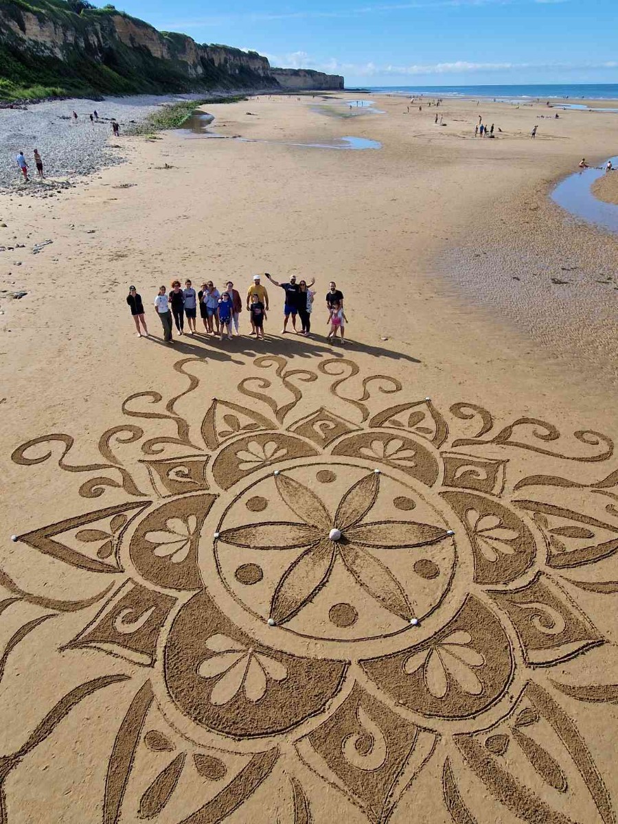 C'est un moment de complicité ludique où petits et grands collaborent pour créer une fresque géante. L'accent est mis sur l'éveil artistique, le jeu avec les marées et le plaisir de transformer la plage en un terrain d'expression artistique.
